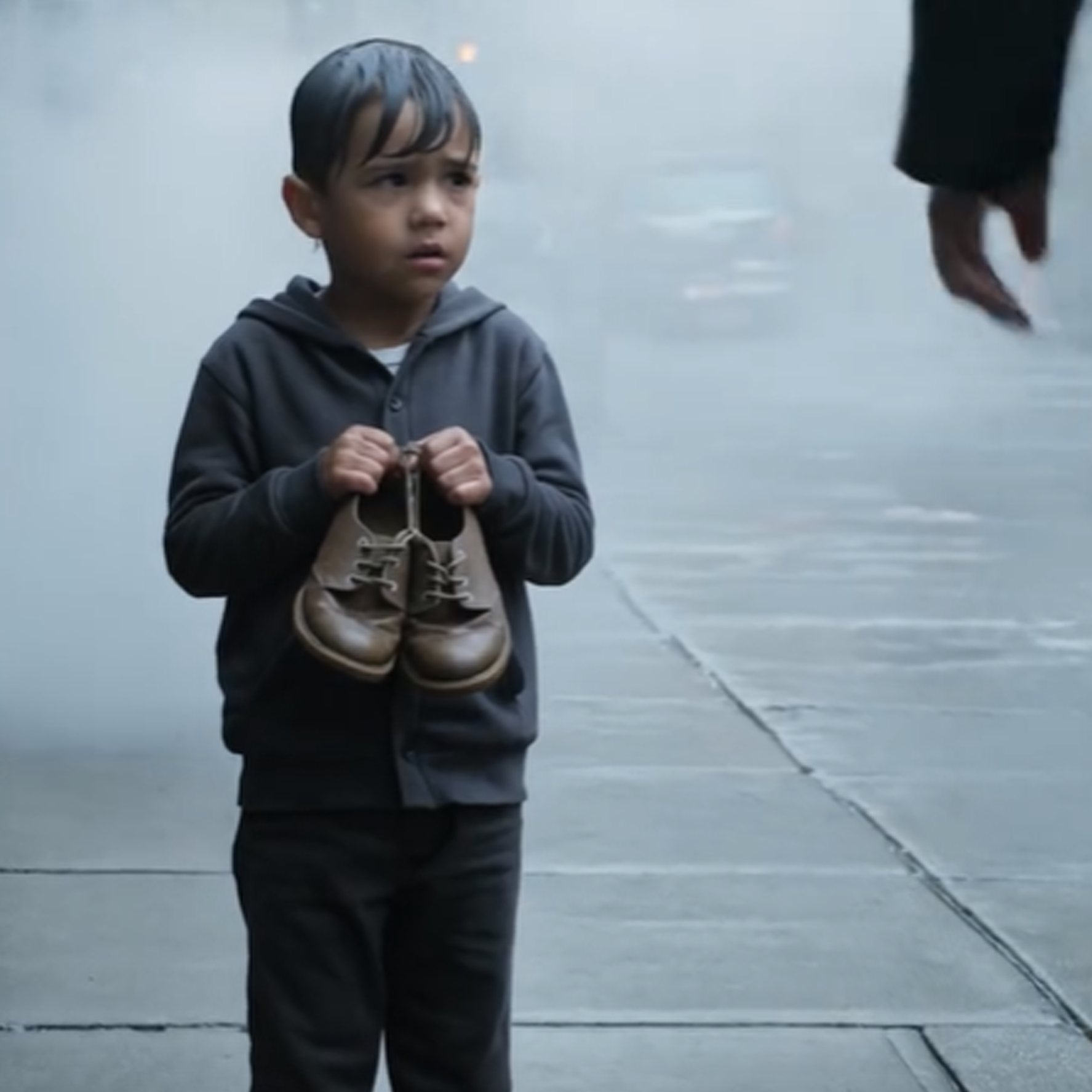 The boy’s fingers tightened around the shoes.